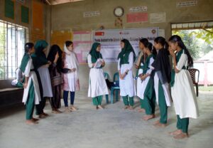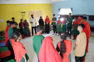 A drama workshop was organized at the school for the school drama team, where various plays and theatrical practices were performed focusing on important social issues such as women’s rights, prevention of child marriage, eve-teasing, and violence against women and children.